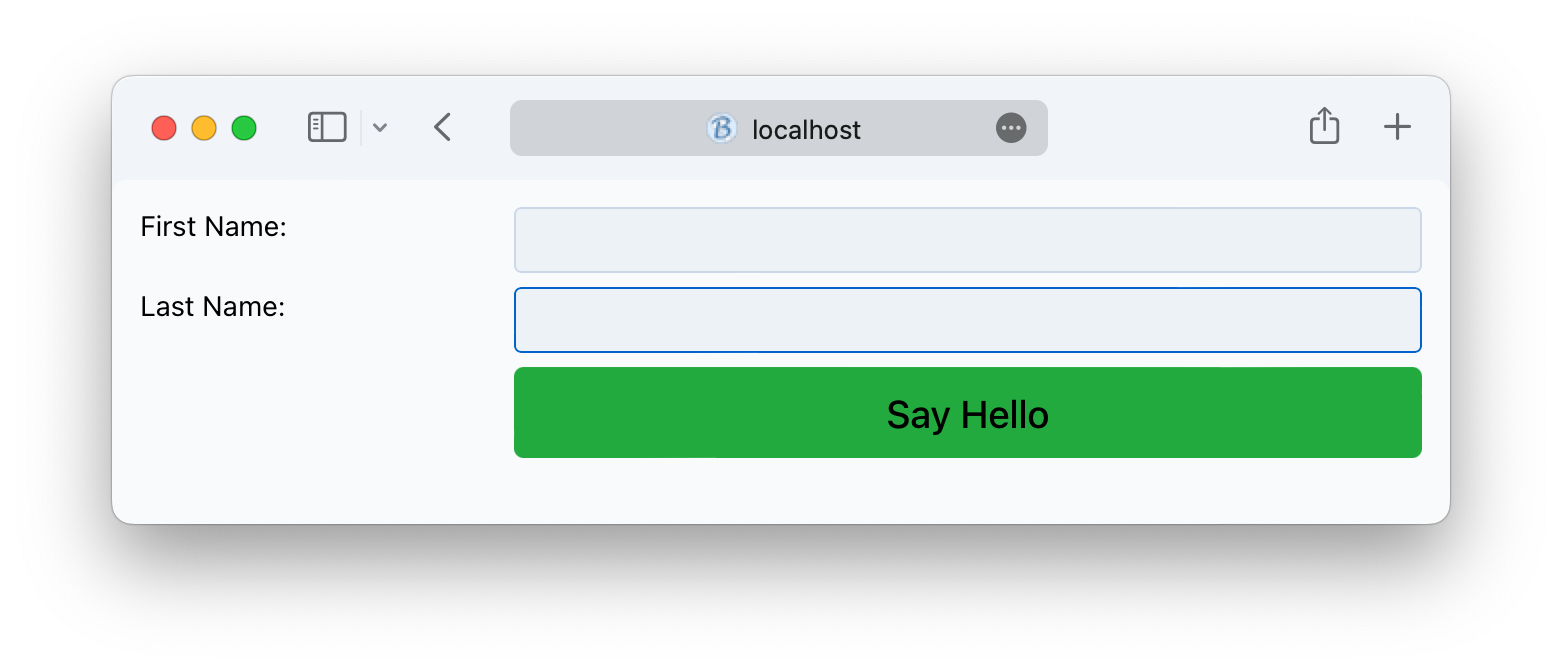 3) Our form is looking pretty good, except that the [Say Hello] button would look better if it spanned both columns or was located on the right column instead of the left. To make the button span both columns, either of these two methods work: