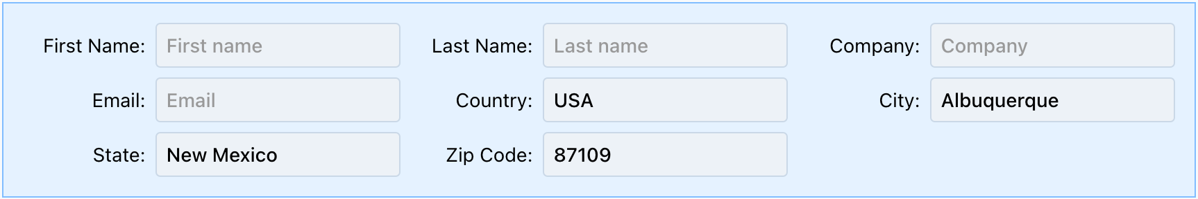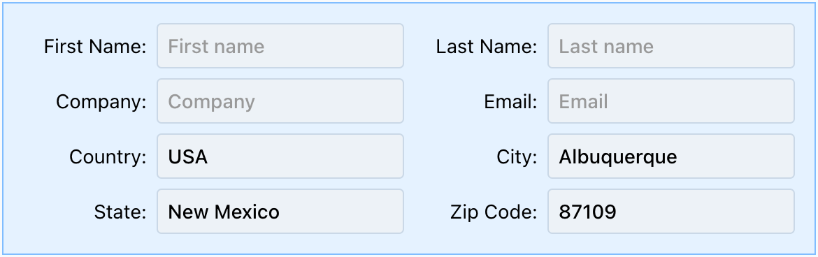 As covered earlier, CSS Flexbox and Grid may both be used for a number of scenarios, but some cases work better with one over the other. For example, if you're looking for a simple way to set the horizontal and vertical alignment of a control in a window, then flexbox is the easiest solution. Of course, you could use CSS Grid and specify a single-column grid or single-row grid, so it's a reasonable solution for that case as well. CSS Flexbox is more limited in the number of properties and values that it supports than the CSS Grid, so the grid model can be much more complex. The CSS Grid has 18 properties that affect its configuration, with an additional 10 properties for the controls contained within the grid. For that reason we won't be listing and defining all possible properties and values, but they are documented well with examples and drawings in the CSS-Trick's Complete Guide to Grid article.Placing Controls In a CSS Grid