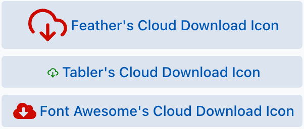 1) To add a "download" icon to a button, we will first want to find a suitable icon. We can start by searching the existing icon pools for an appropriate icon:- Searching the Feather library for a download icon (link) reveals one named "download"